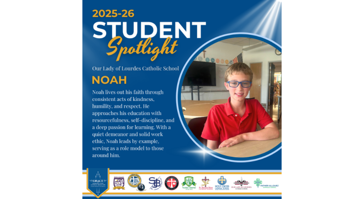 Today we’re spotlighting one of our students at Our Lady of Lourdes Catholic School, Noah.